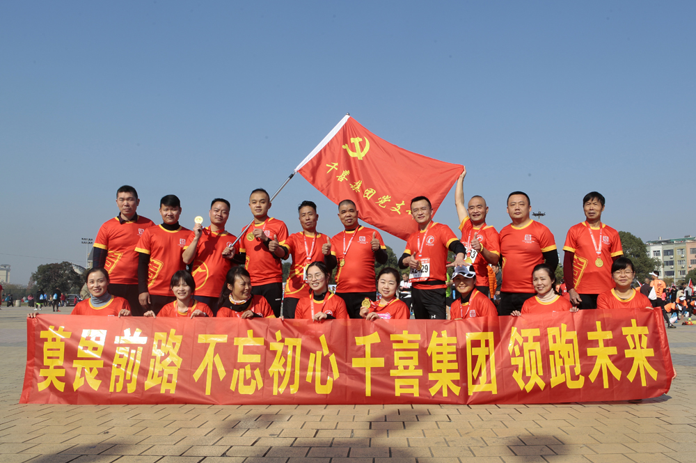 12月8日,2019年永康半程馬拉松比賽在永康市體育中心鳴槍開跑,千喜集團多名職工通過自發組織參加了此次比賽,由千禧龍纖公司總經理陳宏、千喜車業公司總經理施李剛帶隊參賽。同時,千喜黨支部書記胡仲帶領部分黨員組成志愿小組,全程為千喜跑團的所有參賽選手提供后勤保障服務。