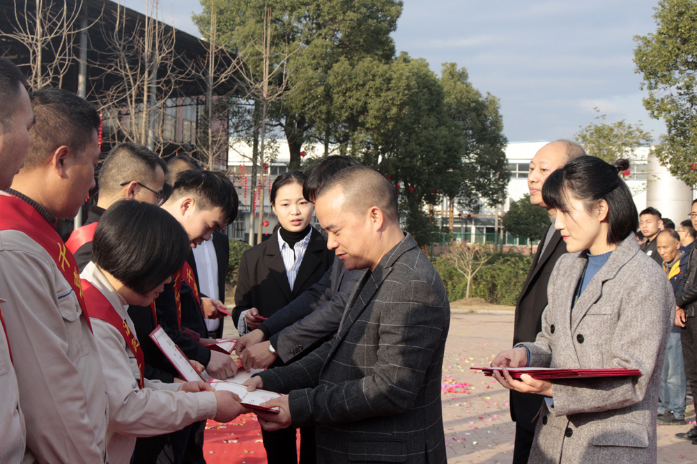 隨后,進(jìn)行了2019年度優(yōu)秀員工和黨員的表彰儀式,各事業(yè)部共有41位人員和1位黨員獲得了優(yōu)秀員工和優(yōu)秀黨員的榮譽(yù)稱號。各事業(yè)部優(yōu)秀員工依次上臺,由總經(jīng)理代表集團(tuán)為他們授予榮譽(yù)證書及獎勵。當(dāng)一份份沉甸甸的證書交到他們手上時,便是對他們努力工作的最大肯定和褒獎,也希望未來他們能帶著千喜人的精神繼續(xù)前行,不斷挑戰(zhàn),不斷超越。同時,集團(tuán)辦公室韋偉作為優(yōu)秀員工代表上臺發(fā)言:感謝公司提供的平臺,讓她能夠在工作中實(shí)現(xiàn)自我價值,同時,也感謝千喜這個大家庭,讓她在緊張的工作之余體會到了家的溫暖和親友般真摯的情誼。未來,依然會在自己的崗位上發(fā)光發(fā)熱,為千喜集團(tuán)的發(fā)展貢獻(xiàn)自己的力量。 ![]()