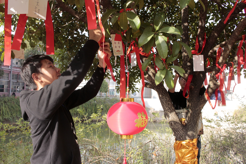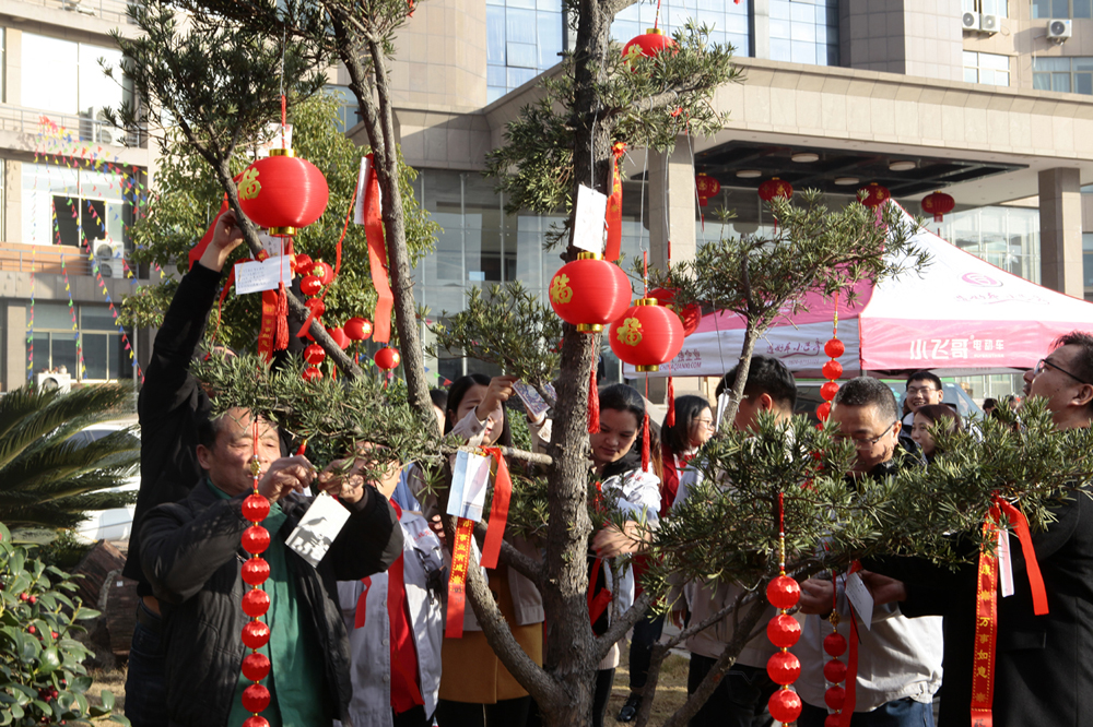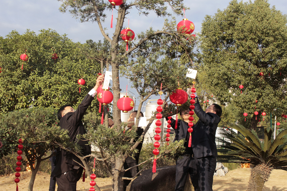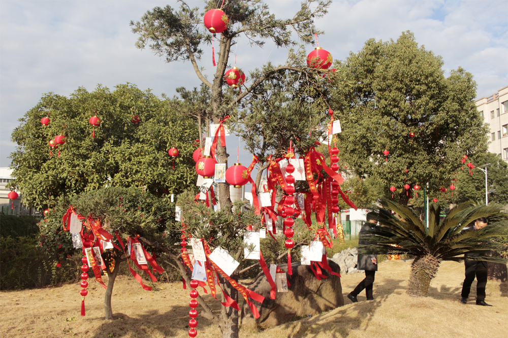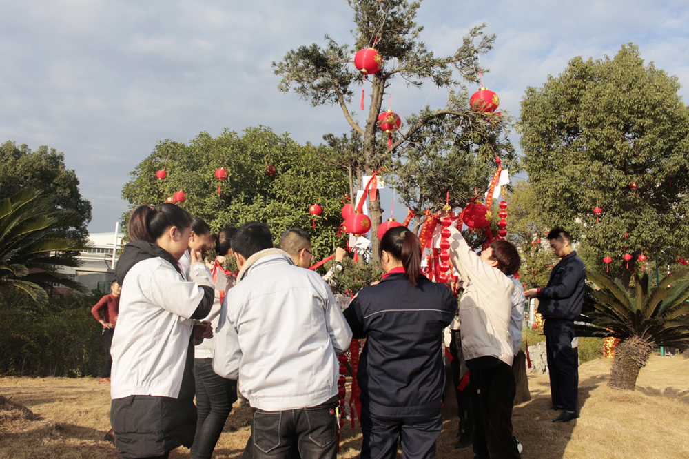 之后,主持人再次邀請各事業(yè)部的總經(jīng)理登臺,由他們分別寫下2020年的第一份心愿,許下對未來的美好愿景,并親自將自己寫的心愿卡掛到廠區(qū)的“心愿樹”上。在他們的引領(lǐng)下,全體在場人員紛紛移動到廣場上的“心愿區(qū)”,在擺放了各式各樣心愿卡的桌臺旁,大家仔細(xì)的挑選著中意的卡片,一筆一劃寫下自己的心愿,然后鄭重其事的走到心愿樹前,將自己的心愿卡掛在高高的枝丫上,很快,一張張小小的心愿卡,便凝結(jié)成了一棵盛開著許許多多心愿的大樹,乘著微風(fēng)飄揚(yáng)著。 隨著心愿樹上的心愿卡越來越“茂盛”,掛好心愿卡的人員便來到了“禮品區(qū)”。在這里,各個事業(yè)部負(fù)責(zé)發(fā)放春節(jié)禮品的工作人員,已經(jīng)早早的守候在此了,看著他們一張張熟悉的臉龐,熟練地將禮品一一發(fā)到大家的手中,共同分享新年的喜悅與期盼。