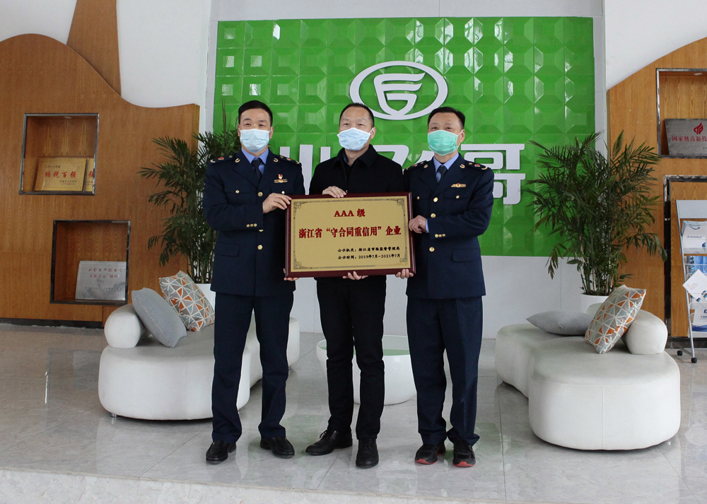 在2019年度開展的AAA級浙江省“守合同重信用”企業公示活動中,浙江千禧龍纖公司順利通過了浙江省市場監督管理局的最終評審,獲評了AAA級浙江省“守合同重信用”企業。